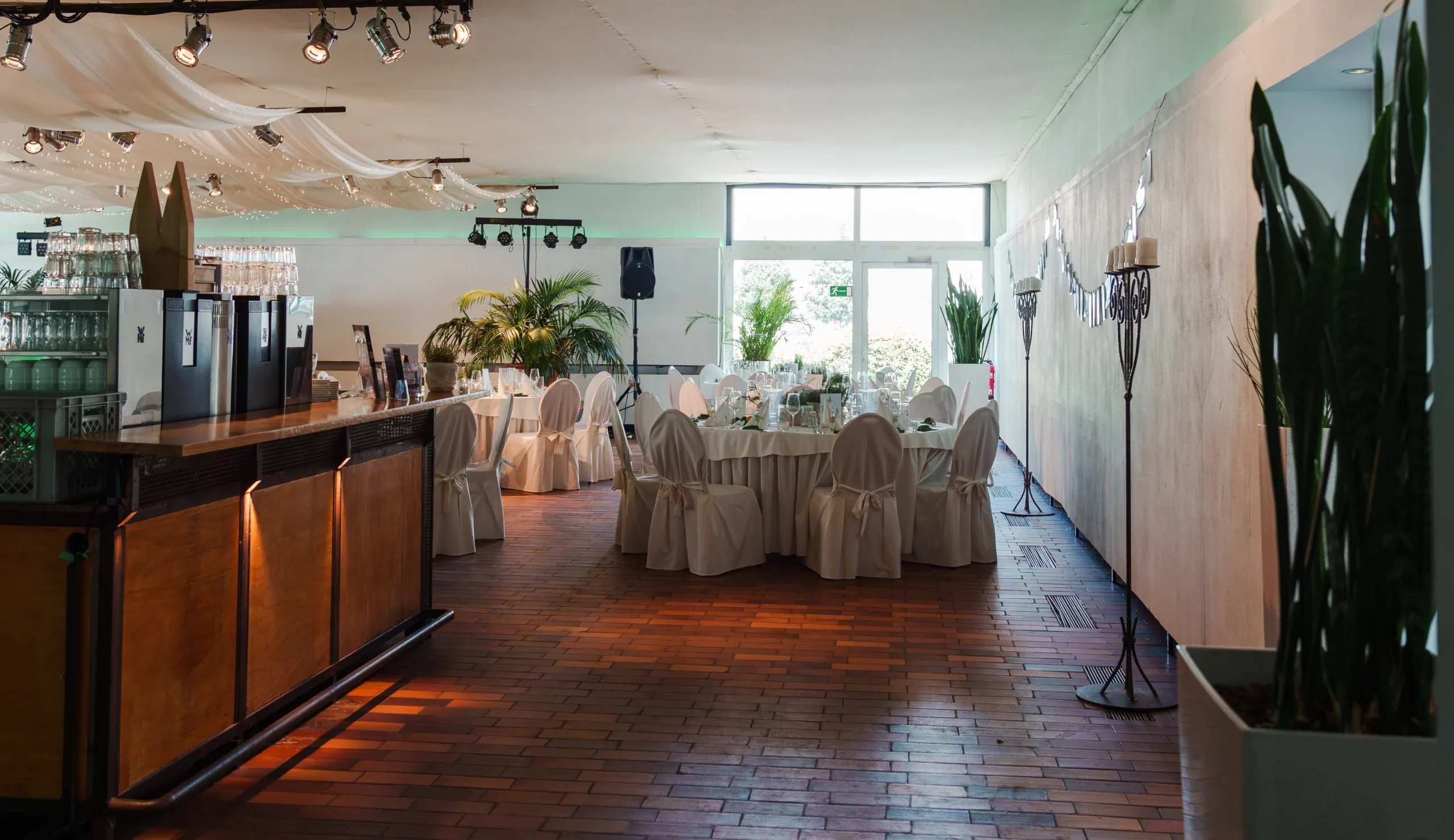 Unsere exklusive Location bietet das perfekte Ambiente für Hochzeiten, Firmenfeiern und private Events. Zentral gelegen und stilvoll gestaltet, bildet sie den idealen Rahmen für besondere Momente.