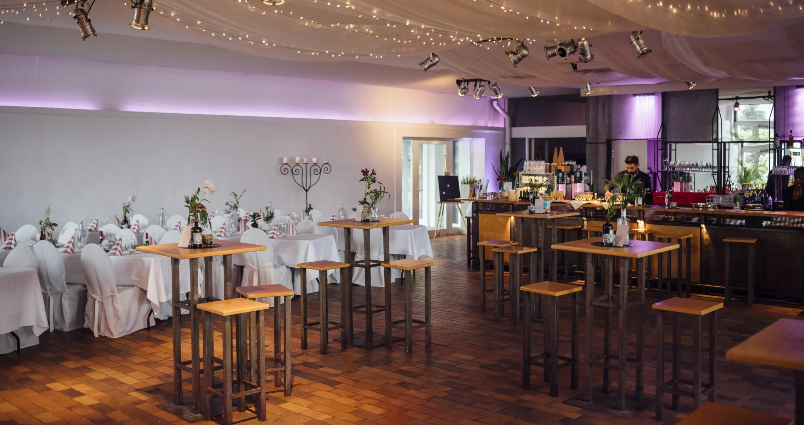 Urban, modern, vielseitig. Ob Hochzeit, Party oder Business-Event – bei uns feierst du nach deinen Vorstellungen: Mit Bankett- oder Bistrobestuhlung finden bis zu 160 Personen Platz, bei Partybestuhlung oder ganz ohne feste Bestuhlung sind auch deutlich größere Gesellschaften möglich. Eine Bühne für Live-Events, moderne Licht- und Tontechnik ohne Lautstärkebegrenzung und der flexible Outdoorbereich mit zusätzlichen Sitzmöglichkeiten schaffen den Raum für unvergessliche Veranstaltungen.